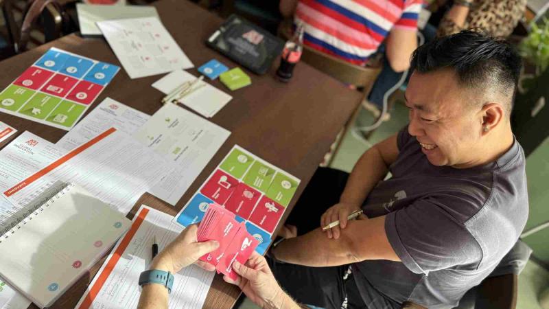Organise: Teams are given a variety of Object, Tech, and Data cards to inspire innovative thinking.